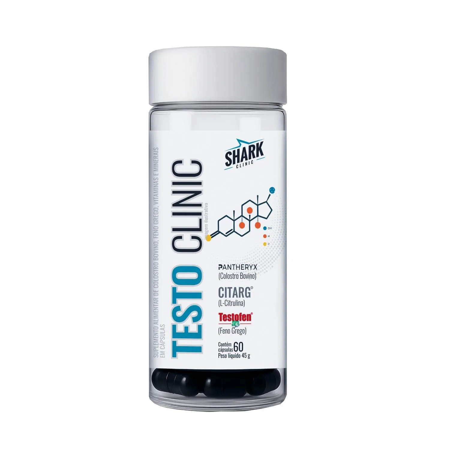 O SHARK TESTO CLINIC É UM SUPLEMENTO AVANCADO DESENVOLVIDO COM INGREDIENTES DE ALTA PERFORMANCE PARA AUXILIAR NO EQUILIBRIO HORMONAL, FORÇA E VITALIDADE MASCULINA. SUA FORMULA COMBINA COLOSTRO BOVINO INTEGRAL, FENO-GREGO E O EXCLUSIVO CITARG (ALGA CHONDRUS CRISPUS), ATIVOS NATURAIS QUE PROMOVEM BEM-ESTAR FISICO E MENTAL